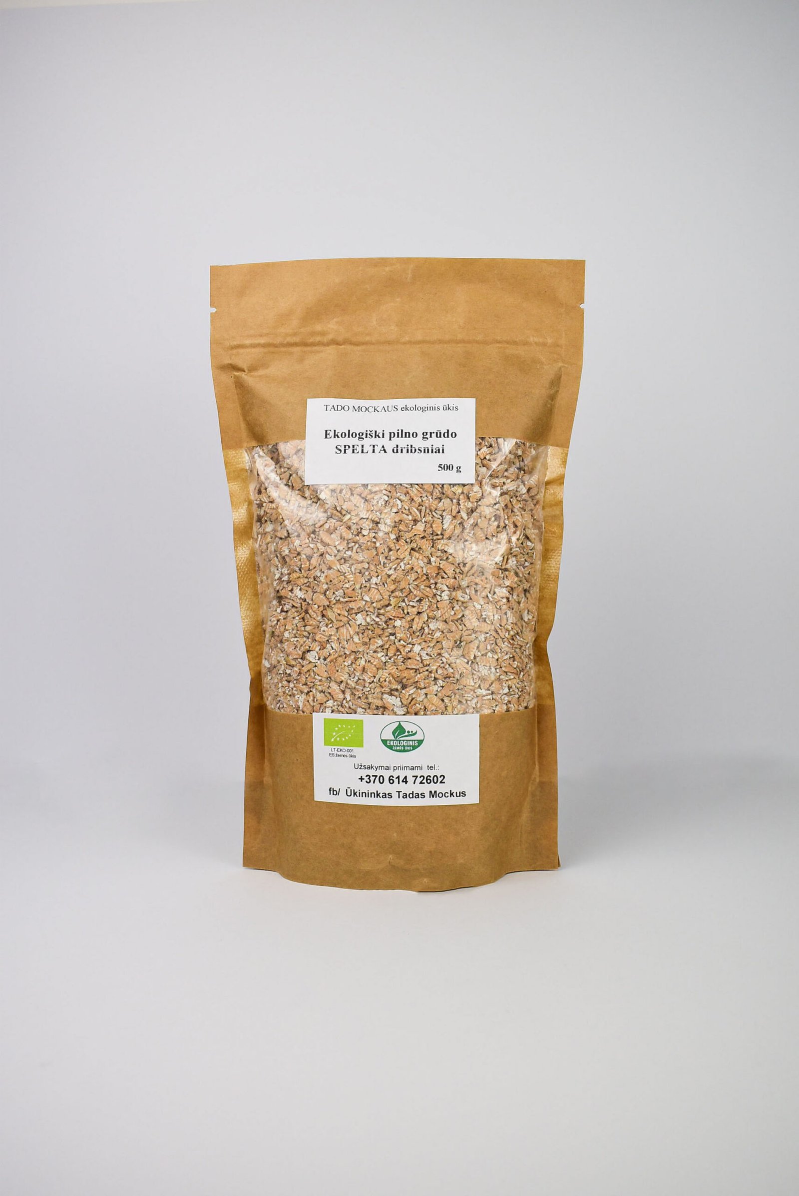 Ekologiški pilno grūdo spelta dribsniai yra aukštos kokybės produktas, pagamintas iš sertifikuotų spelta kviečių, auginamų mūsų ekologiniame ūkyje. Šie dribsniai gaminami naudojant specialią Herkules mašiną iš Austrijos, kurios valcai sukasi labai lėtai. Ši technologija leidžia išsaugoti visas grūdo naudingas medžiagas, tokiu būdu išlaikant dribsnių natūralų skonį, kvapą ir maistinę vertę.